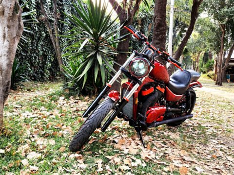 ✅ Pedales y posapiés adelantados (Posición de manejo estilo chopper).