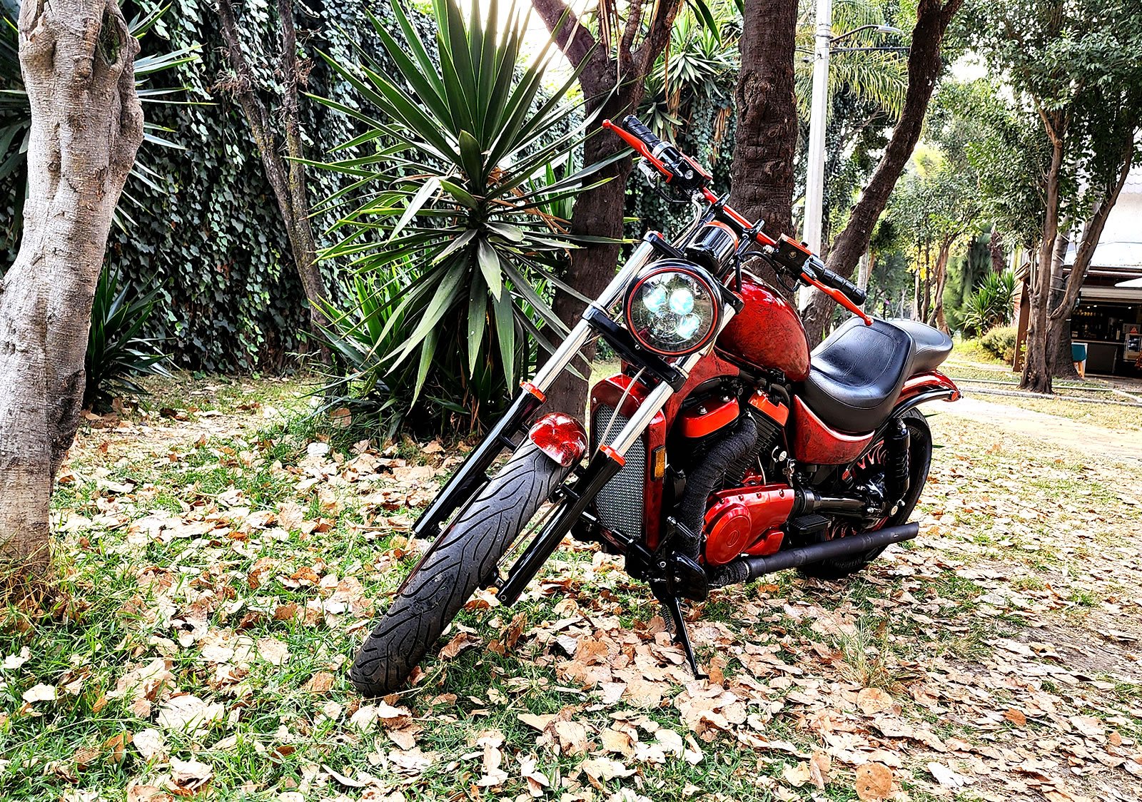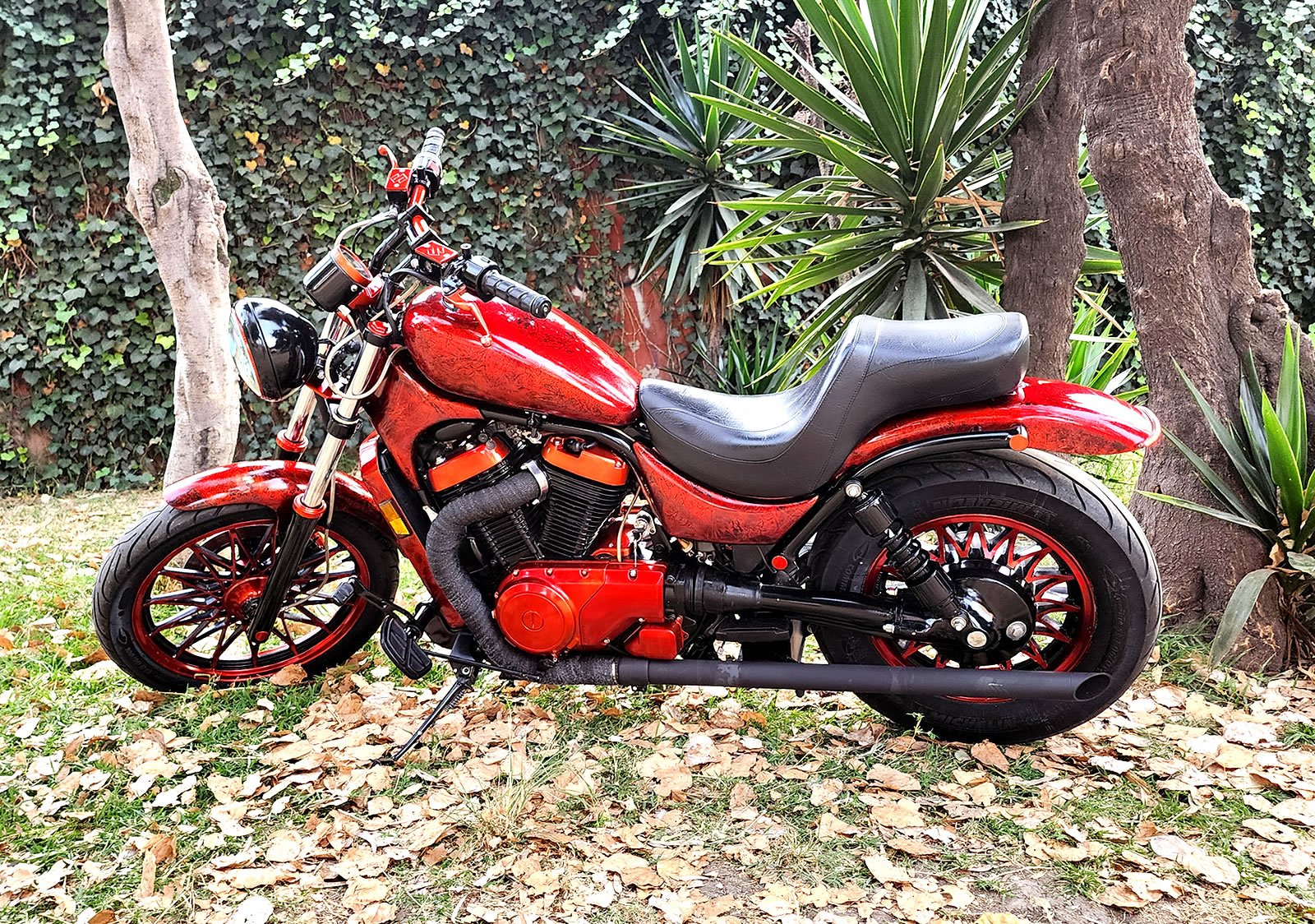 ✅ Pedales y posapiés adelantados (Posición de manejo estilo chopper).